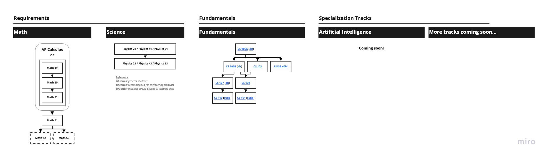 Any alternative or supplemental resources are also linked separately within each block.You can read more about Stanford's definition of each specialization under "Track Descriptions" here.